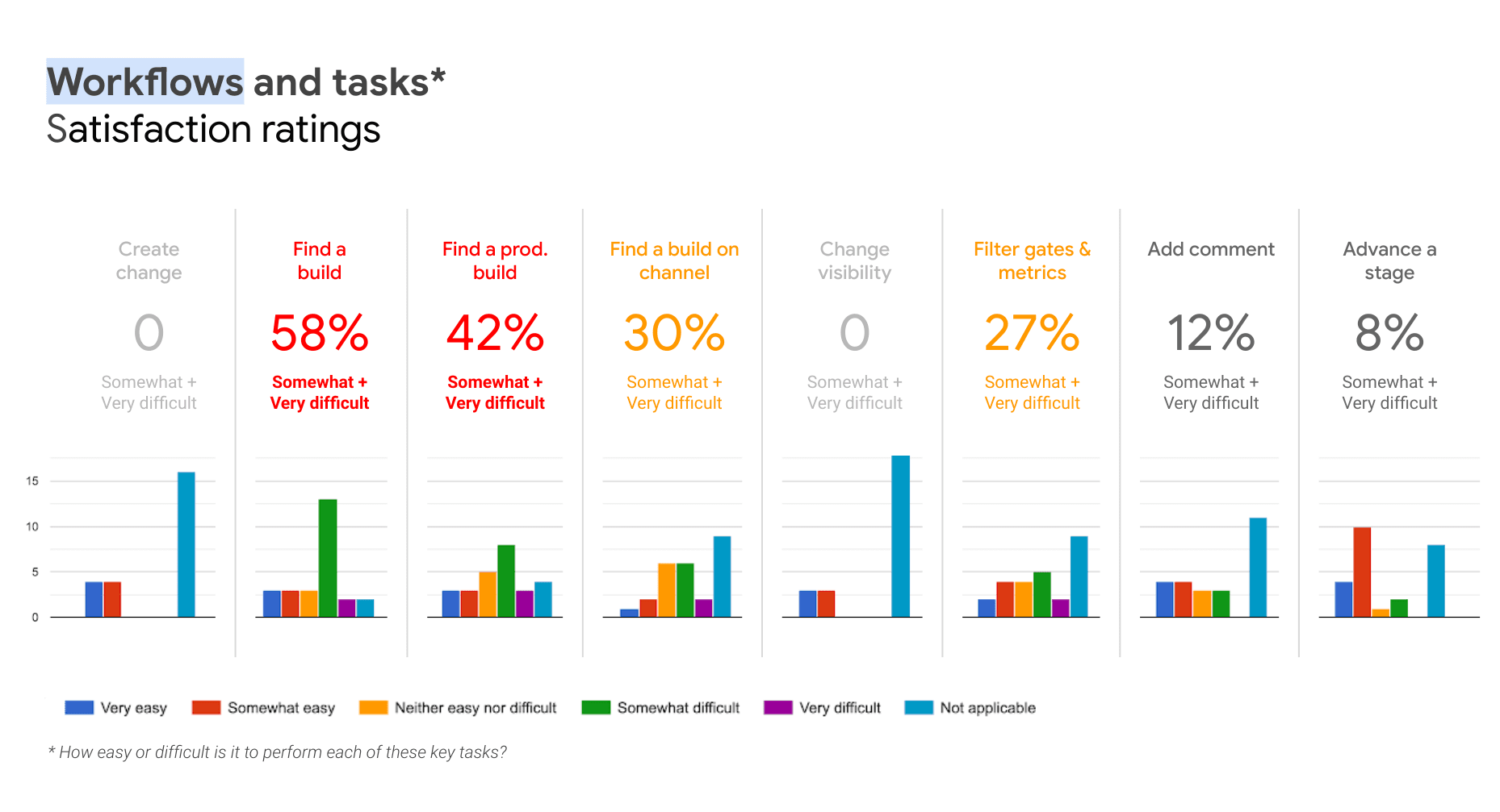 Analyzing the data gathered from user interviews and quarterly productivity survey reports to find most critical issues.